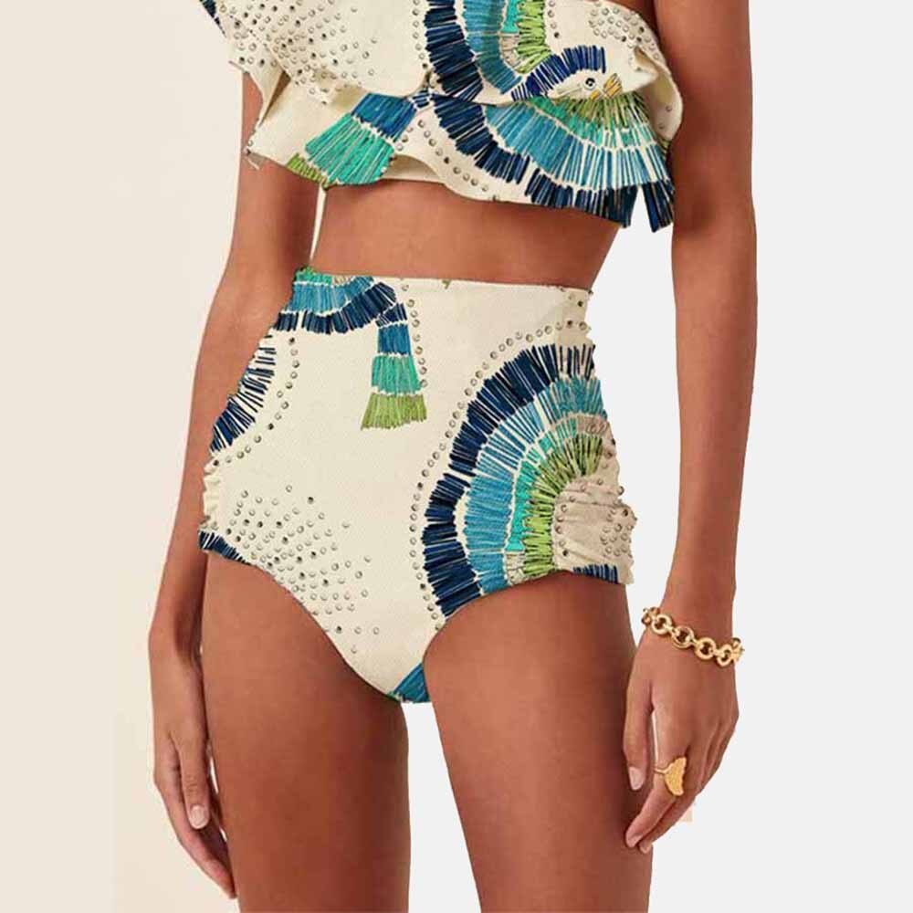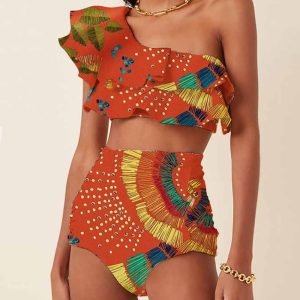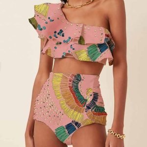 One-Shoulder Embroidered Printed Ruffled Push Up Micro Swimsuit Two Pieces Plus Tankini Women Swimming Suits Swimwear Patchwork